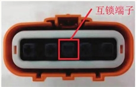 和低壓連接器相比,高壓連接器增加了內外屏蔽環。高壓連接器組裝之后,屏蔽環會和連接器殼體上的屏蔽層接觸,高壓導線屏蔽層最終都會搭鐵,從而實現對高壓導線的360°屏蔽保護。除此之外,大部分高壓連接器還會包括高壓互鎖端子,如下圖所示。