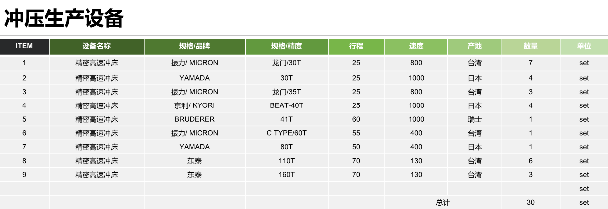 沖壓設備清單